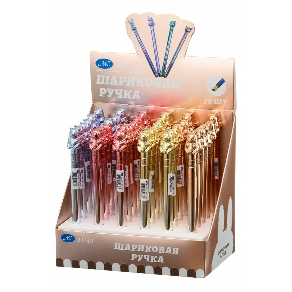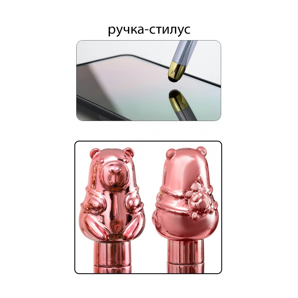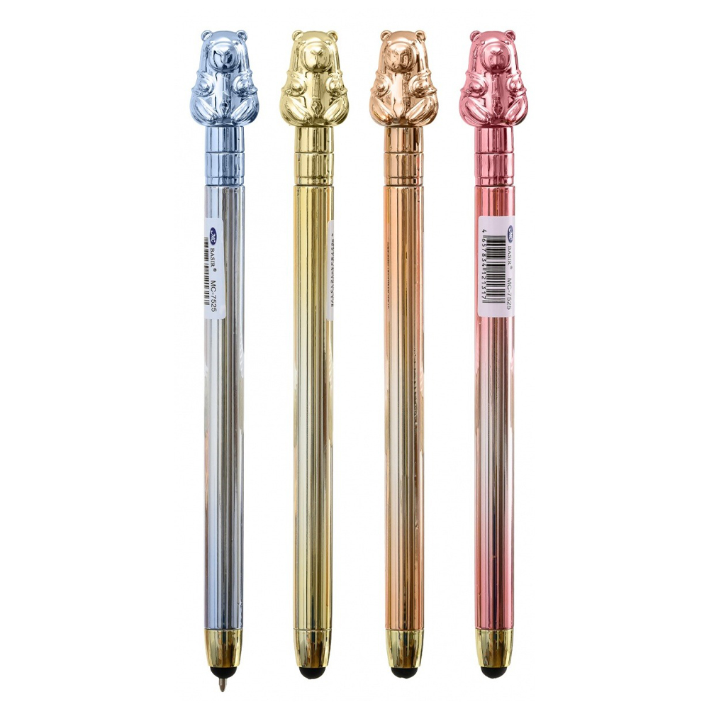 Шариковая ручка с поворотным механизмом+стилус: цветной-металлик корпус /ассорти/, наконечник-КАПИБАРА; цвет чернил синий.