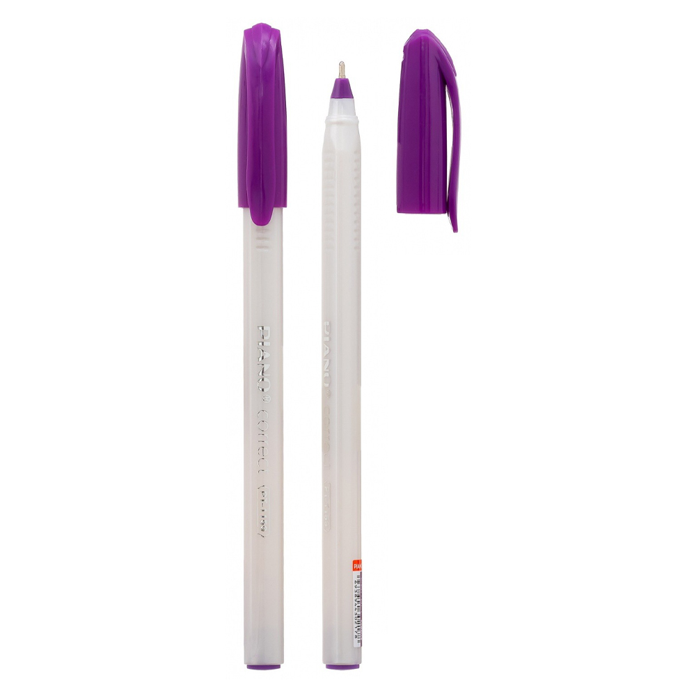 Ручка шариковая: на масляной основе, "Piano Сorrect "; форма корпуса треугольная, белый, перламутровый, цветной колпачок в цвет чернил; игольчатый наконечник; цвет чернил-фиолетовый, 1.0mm