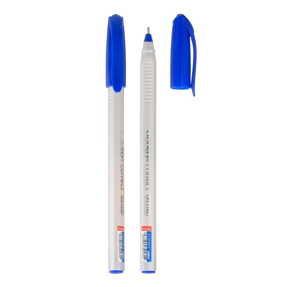 Ручка шариковая: на масляной основе, "Piano Сorrect "; форма корпуса треугольная, белый, перламутровый, цветной колпачок в цвет чернил; игольчатый наконечник; цвет чернил-синий, 1.0mm В коробке: 2400 штук.