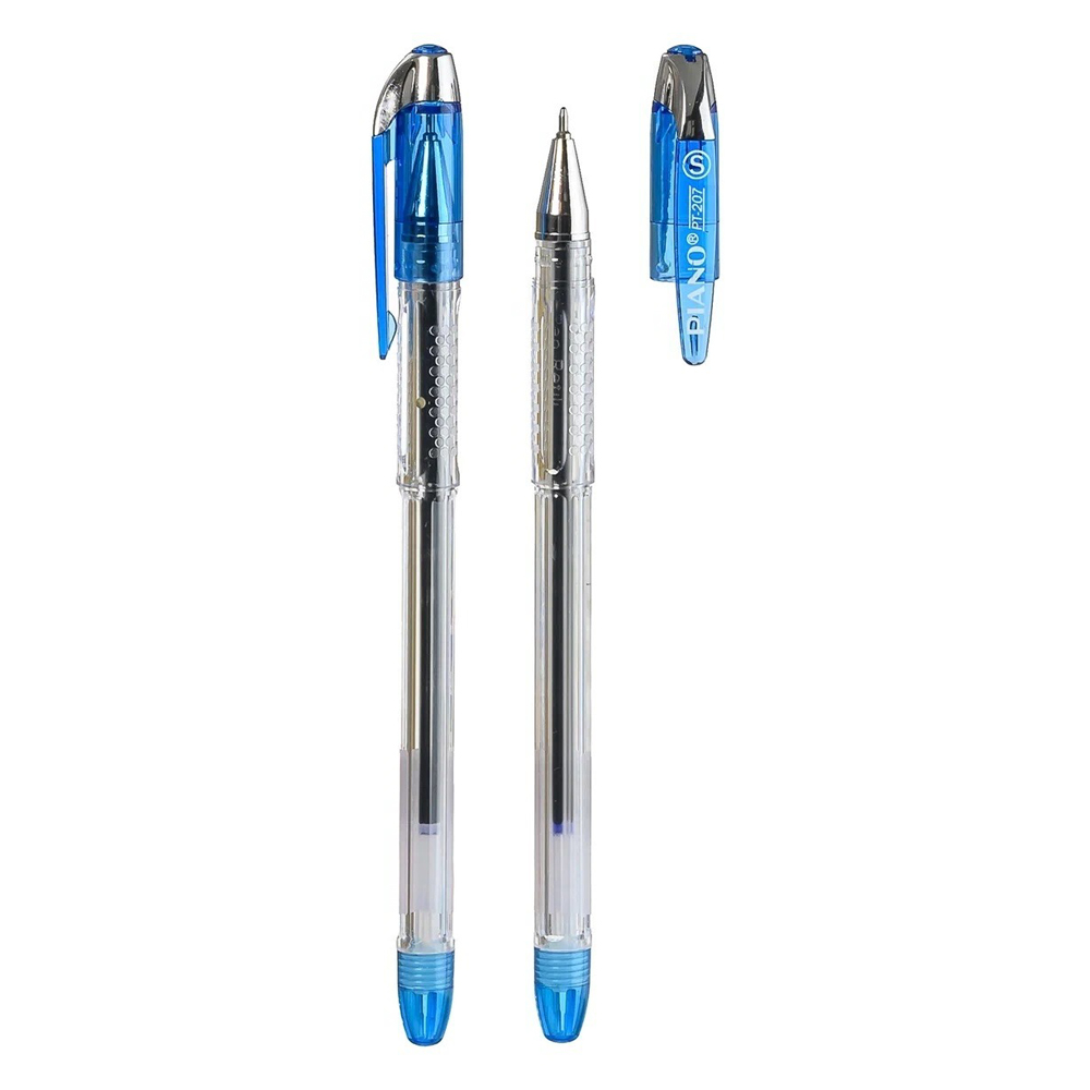 Ручка шариковая: на масляной основе, "Piano", прозрачный корпус, игольчатый наконечник, тонированный колпачок с серебристой вставкой /синяя/толщина пишущего наконечника 0,5 мм.