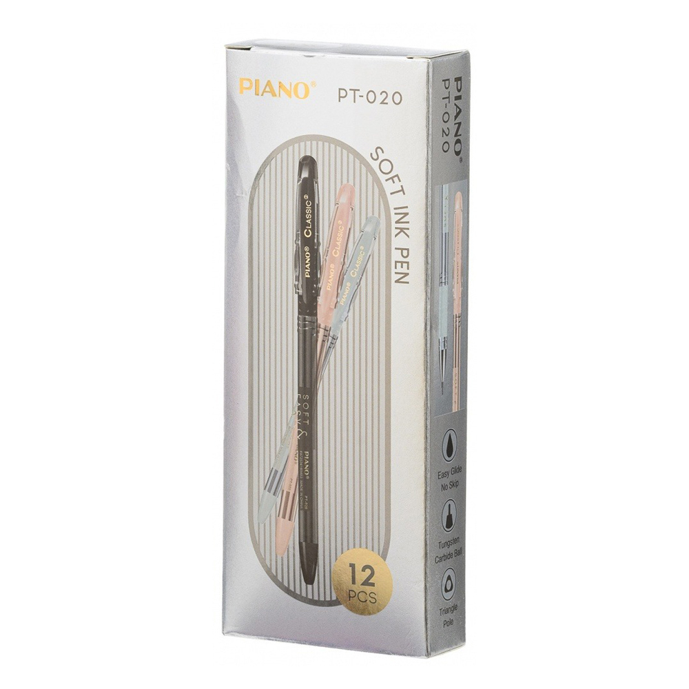 Ручка шариковая: на масляной основе "Piano", цветной тонированный корпус /ассорти/, игольчатый наконечник, резиновый держатель, цвет чернил-синий, 0,5mm.