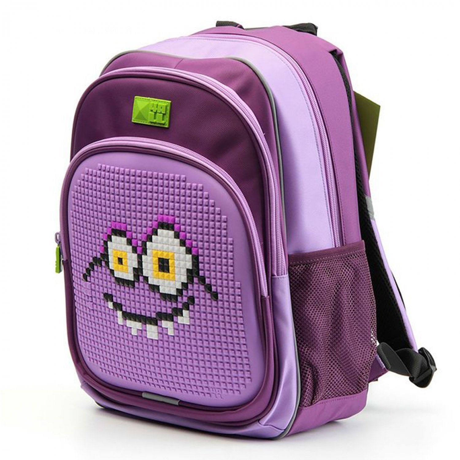 Рюкзак является не только прекрасным помощником в переносе вещей для школьников, производитель дополнил модель съемными пикселями и полем. Мозаичные биты в любое время можно снимать и заново делать картинки, занятие развивает воображение, мелкую моторику и интеллект. Аксессуар никогда не надоест ребенку, потому что каждый день можно самостоятельно изменять дизайн и создавать новые творческие шедевры одновременно.