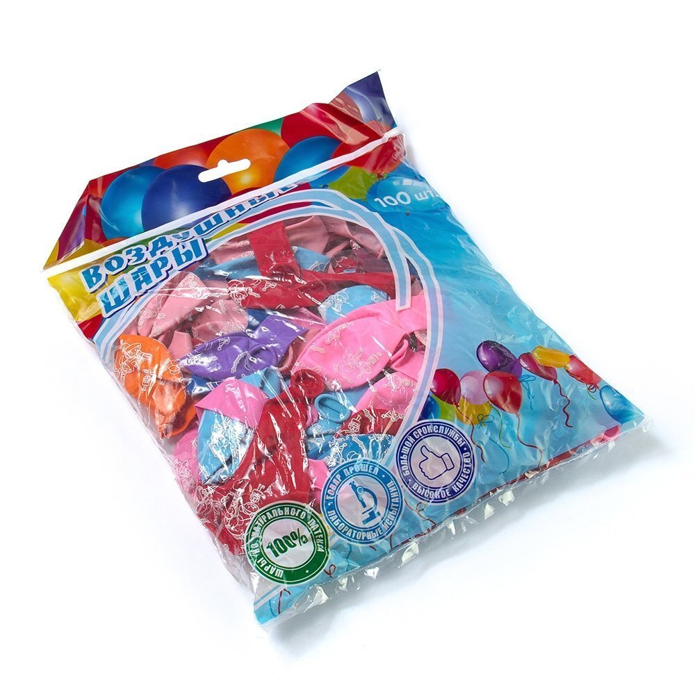 Шар воздушный Alingar, №10 "Поздравляем" №5, ассорти (рисунок цветы), 100шт/уп, пакет с европодвесом