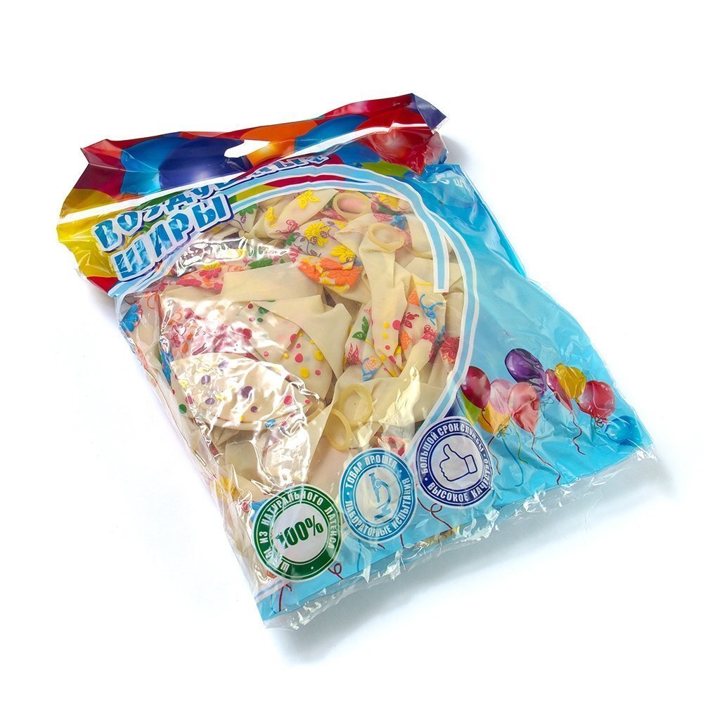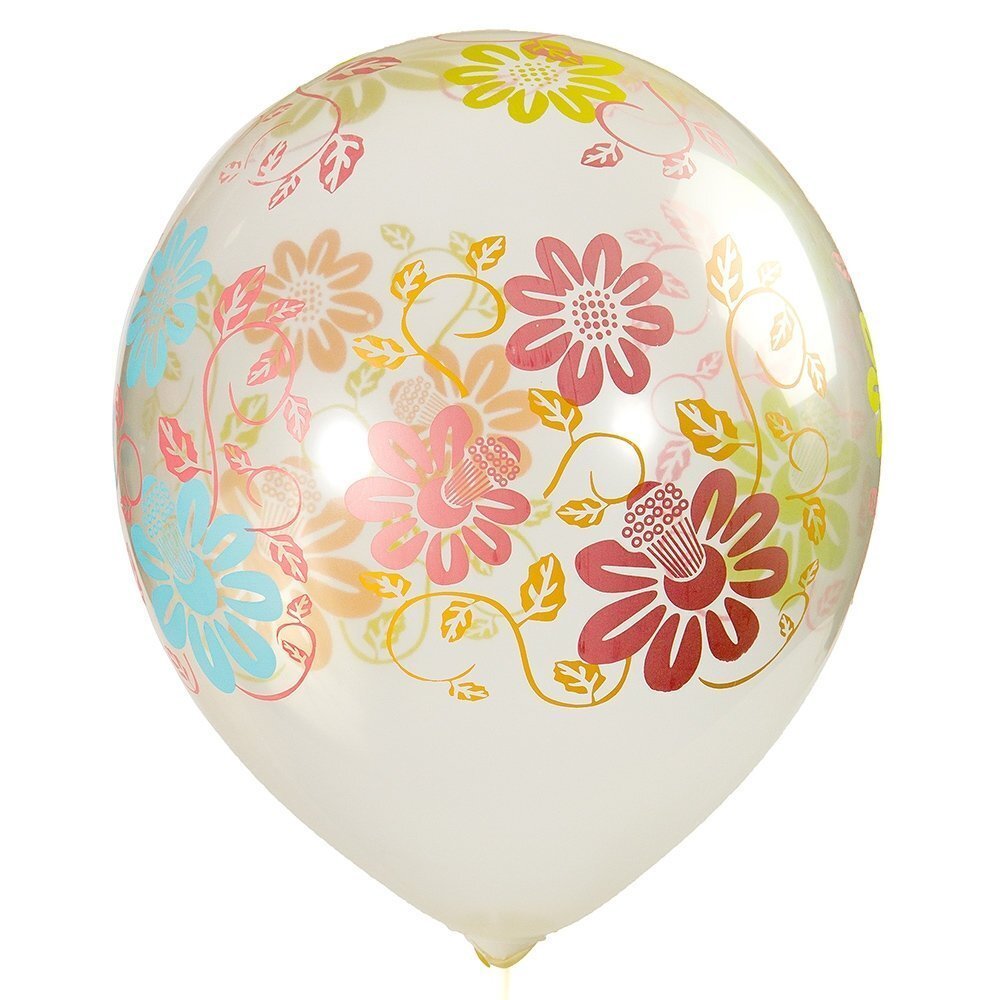Шар воздушный Alingar, №10 "Поздравляем" №5, ассорти (рисунок цветы), 100шт/уп, пакет с европодвесом