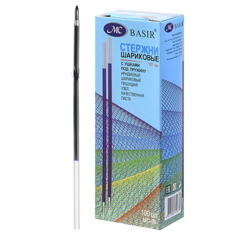 Стержень для шариковых ручек, длина стержня 106 mm, цвет чернил - синий. Ширина линии 0,5 мм. В коробке 100 упаковок по 100 шт.