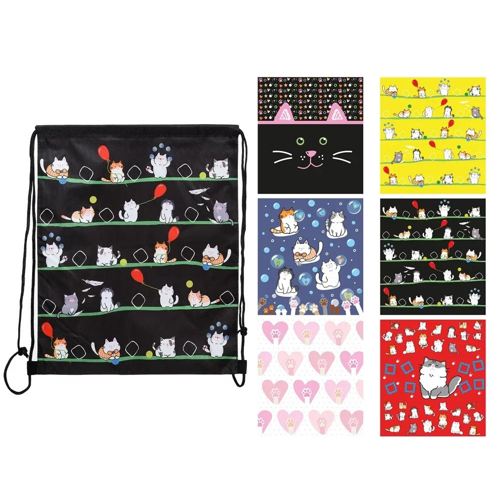 Мешок для обуви: "КОШКИ"; плотная непромокаемая ткань /цвета в ассортименте/, с рисунком, размер 32*42 см. В упаковке: 12 шт.