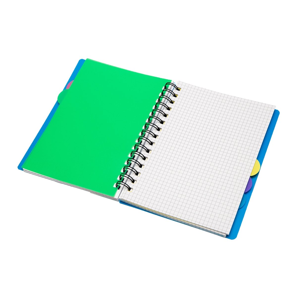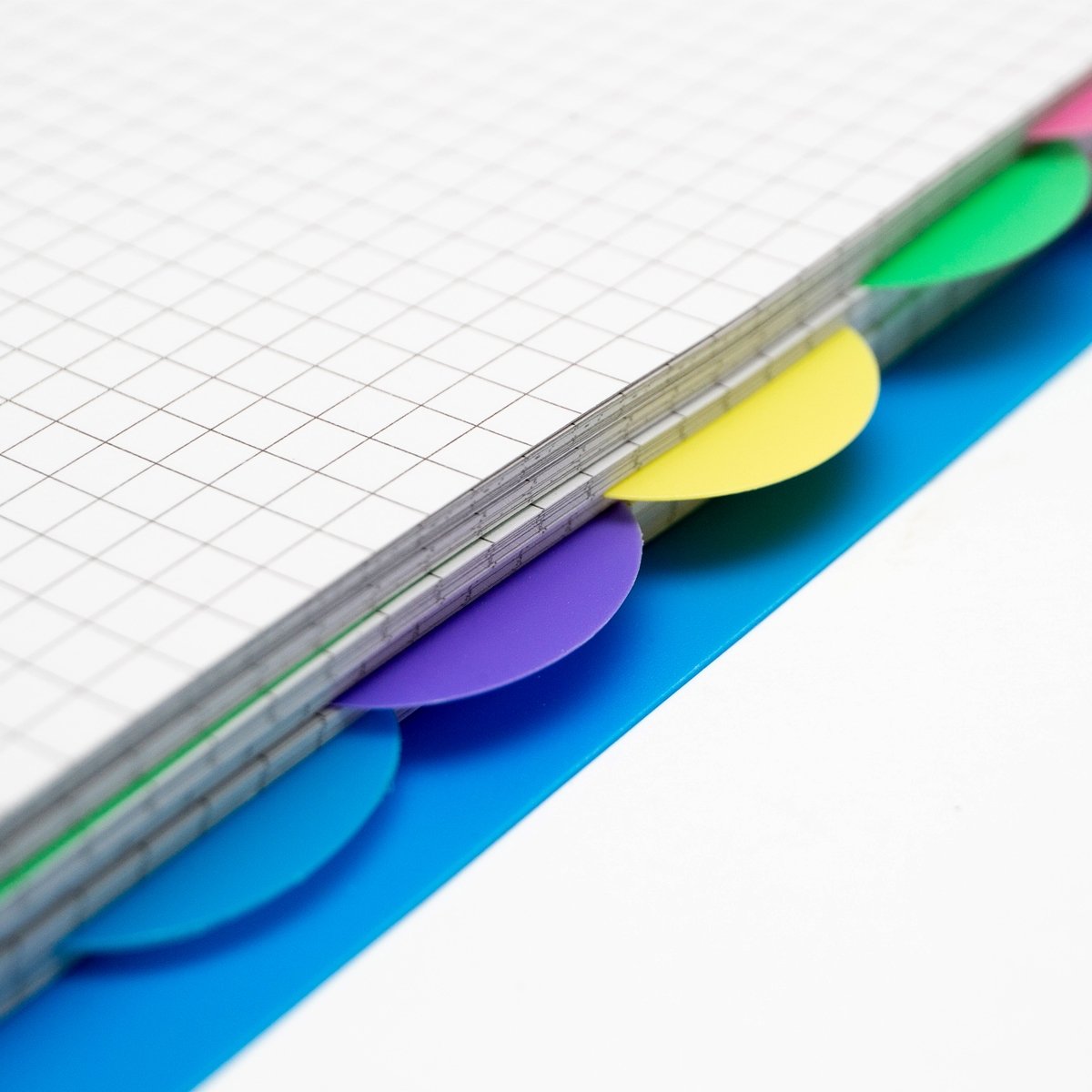 Тетрадь в клетку формата А5 на гребне с разноцветными разделителями идеально подойдет для занятий школьнику или студенту.