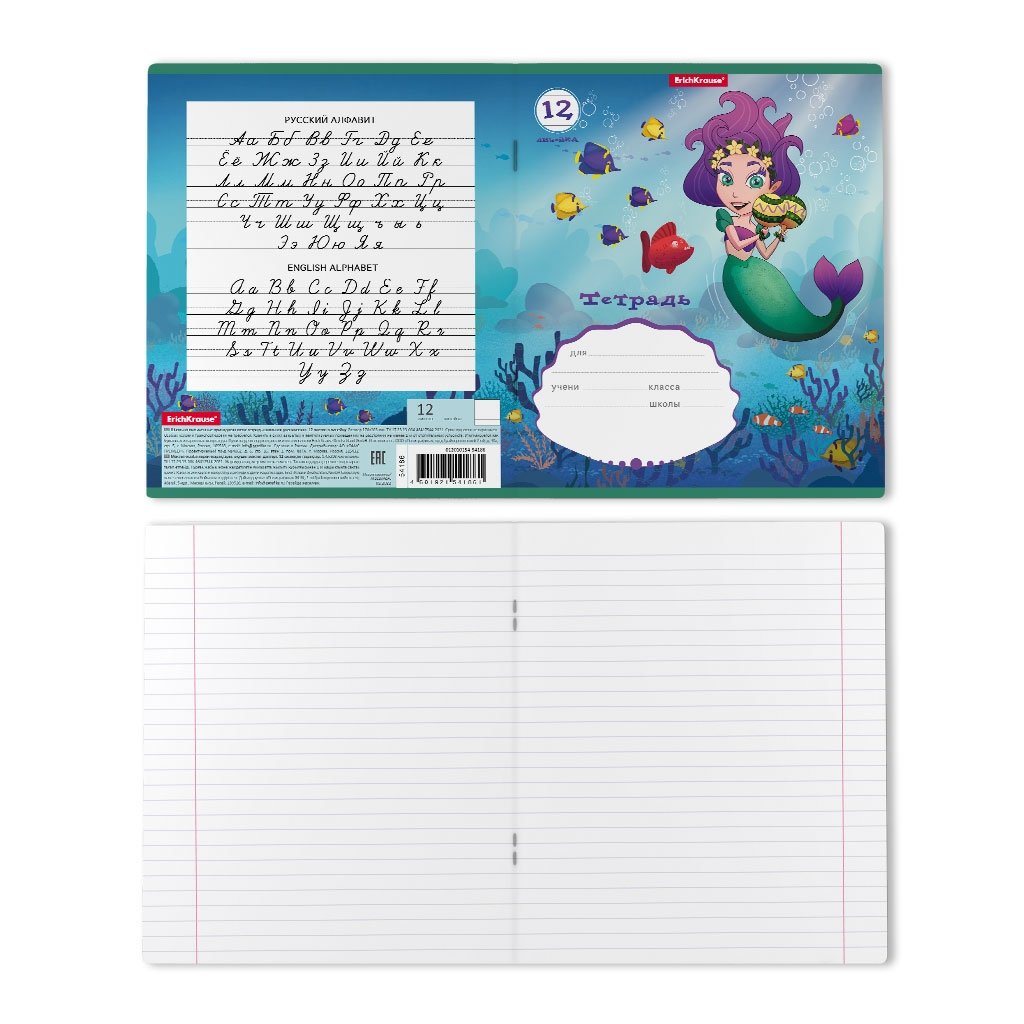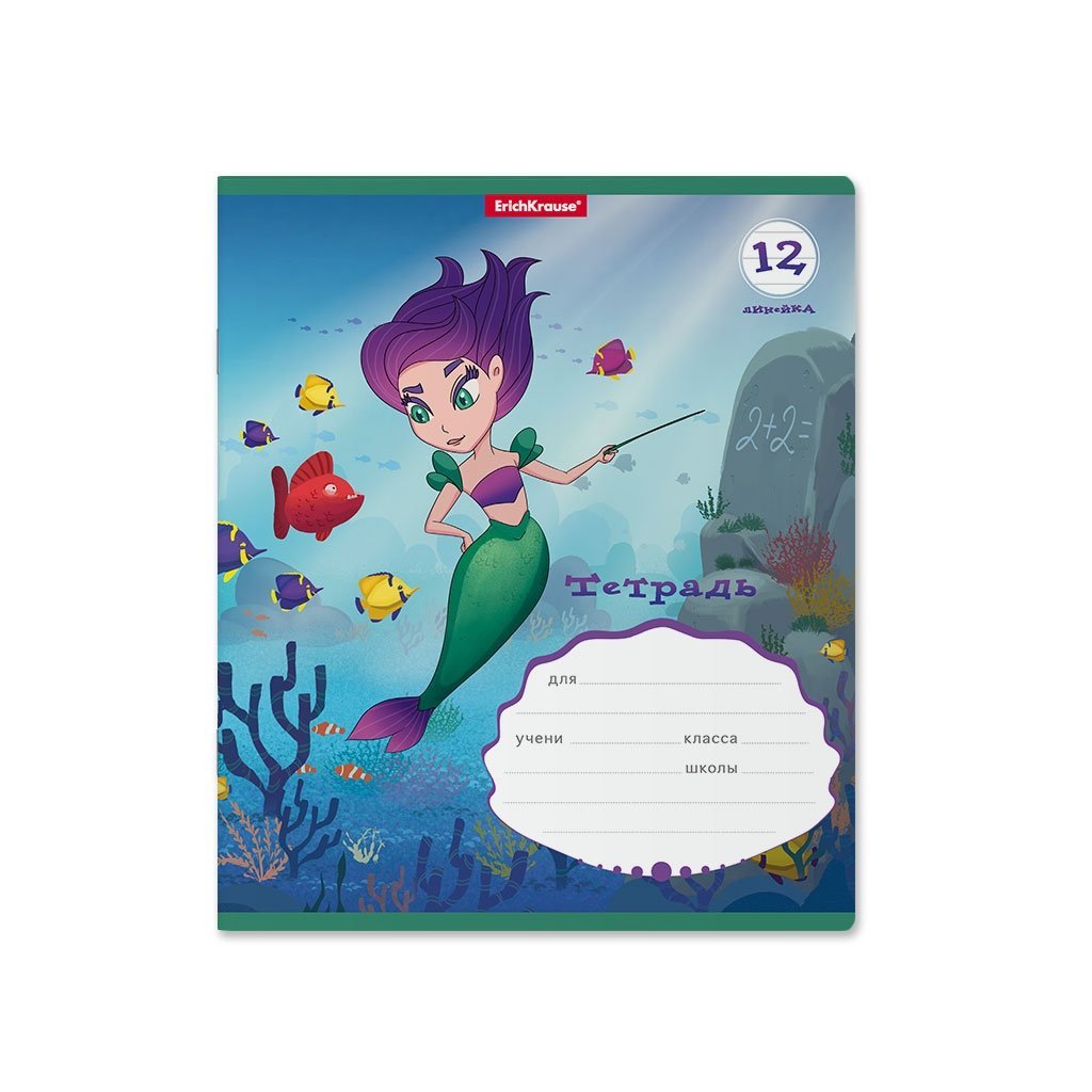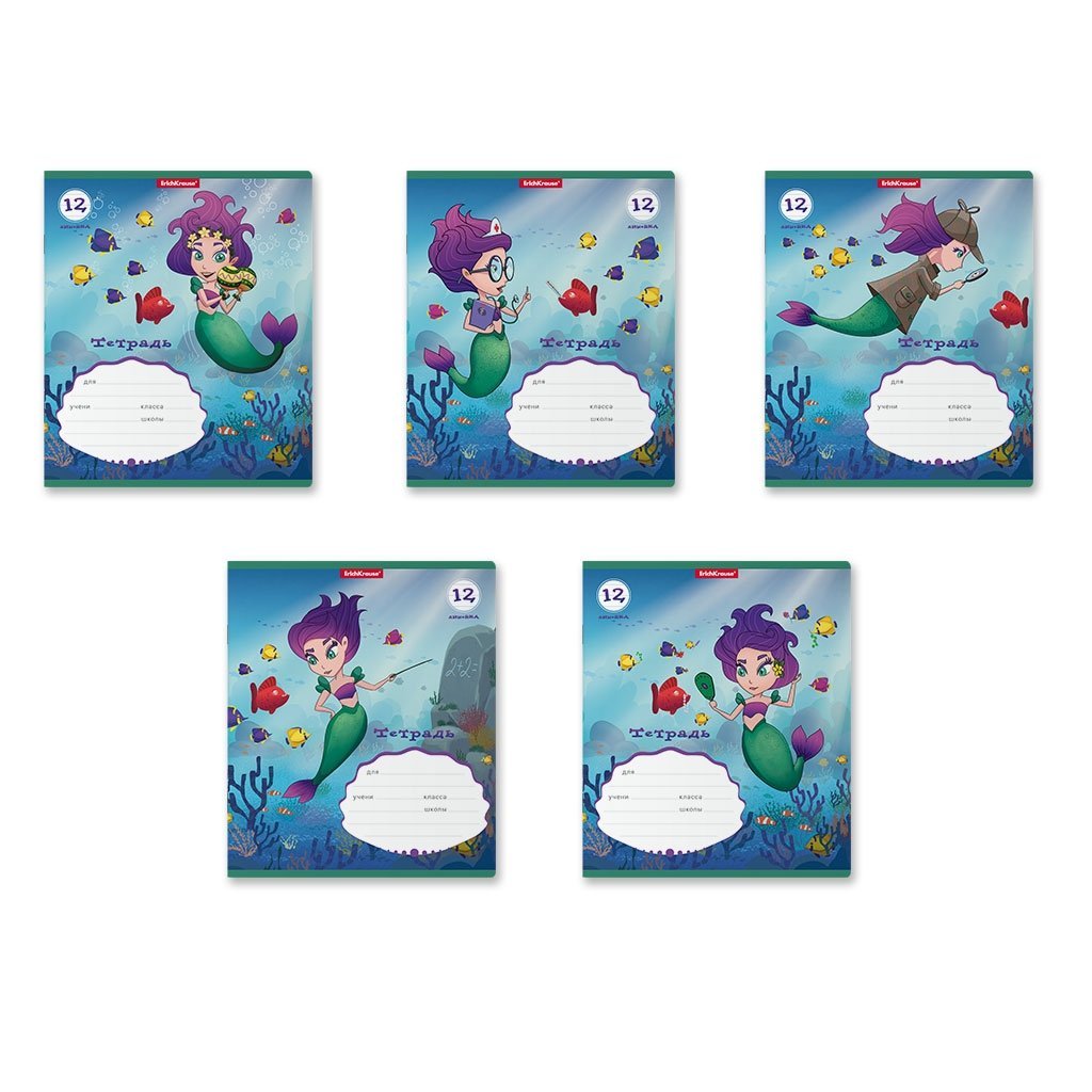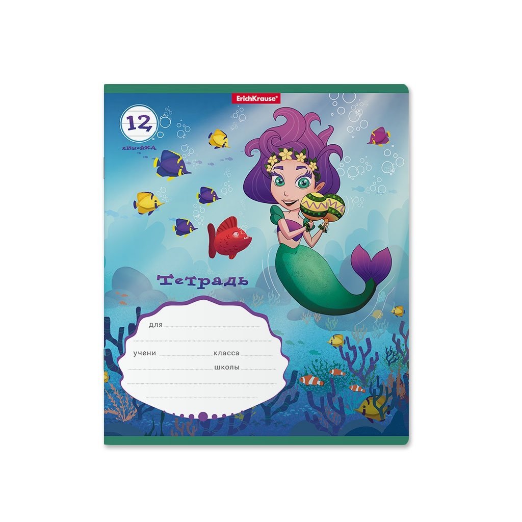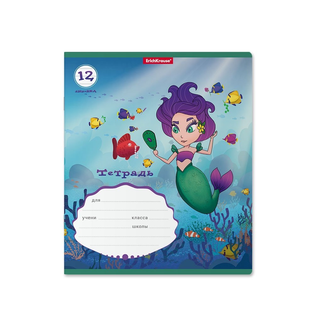 Тетрадь 12л., линия, Erich Krause скрепка, блок офсет, мелован. картон "Девочка- талант", 5 дизайнов