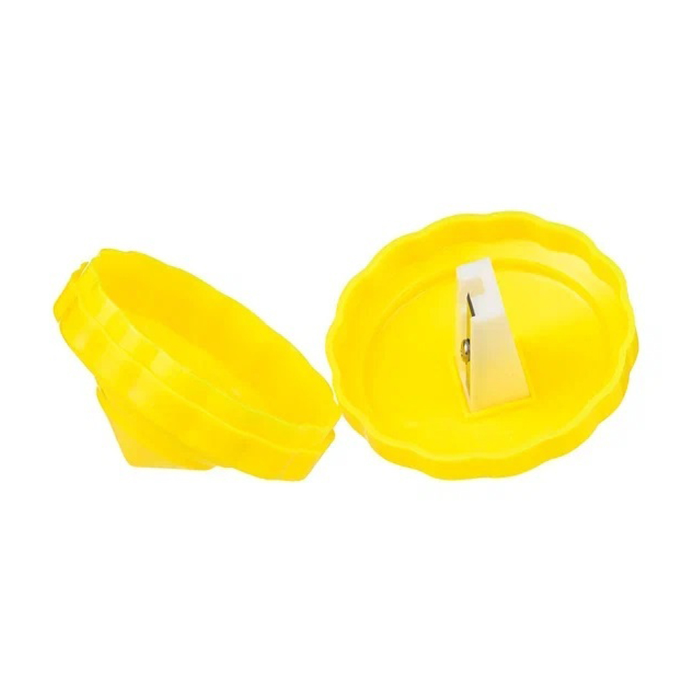 Точилка: "Волчок"; одинарная, яркая, пластиковая /4 цвета/, в форме волчка, в прозрачной пластиковой упаковке, размер диаметр 5см*4,8 см. В коробке: 720 штук.