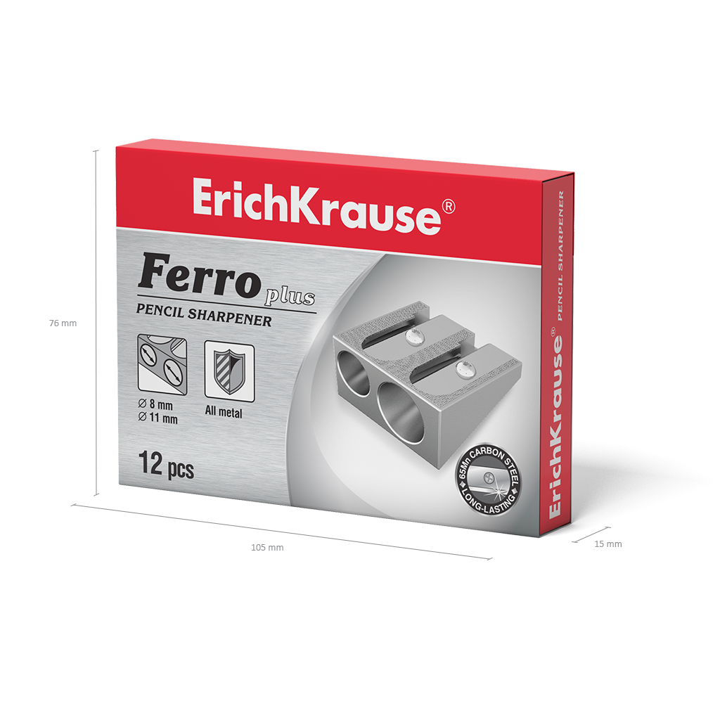 Металлическая точилка с двумя отверстиями диаметром 8 мм и 11 мм для заточки стандартных и утолщенных (Jumbo) карандашей. Высококачественное никелированное брендированное лезвие из углеродистой стали гарантирует высокую производительность.