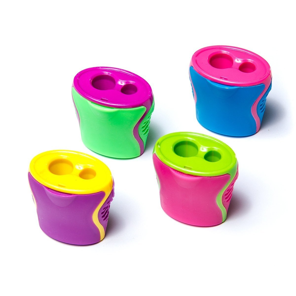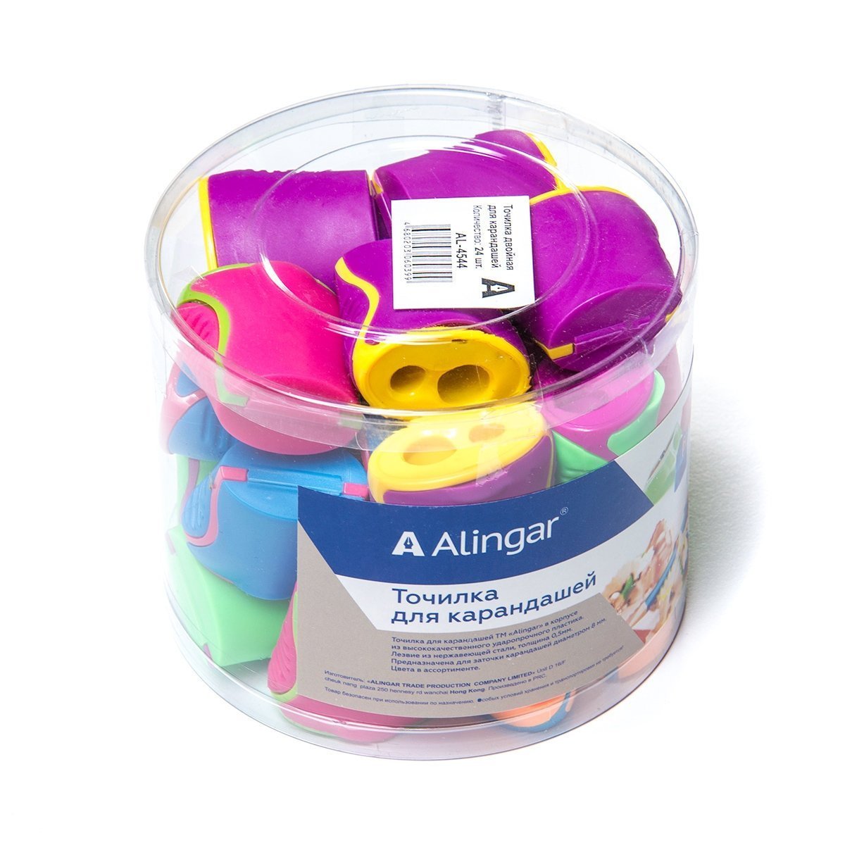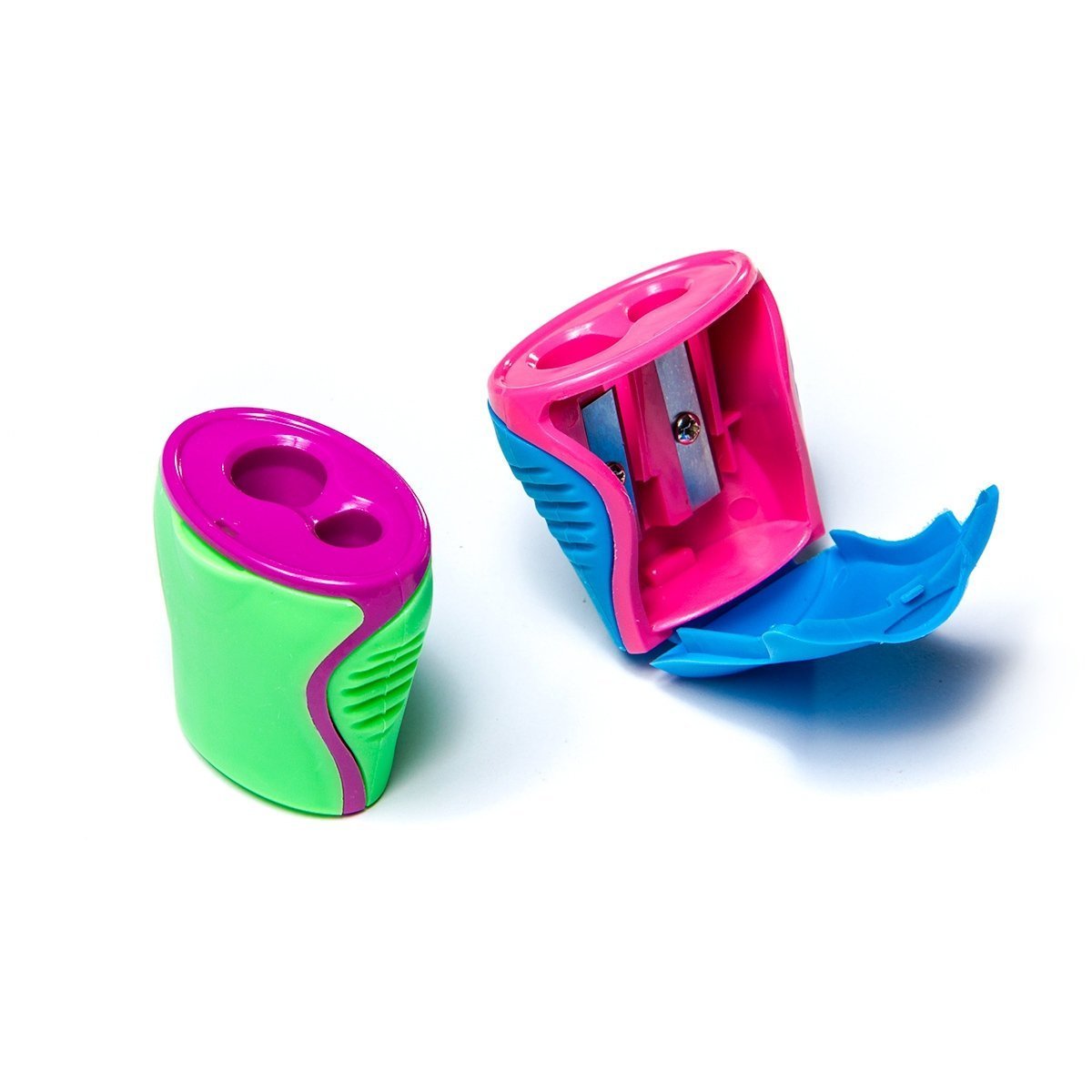 Корпус точилки изготовлен из высококачественного ударопрочного пластика. Точилка для карандашей имеет вместительный контейнер для стружки и стальное лезвие высокого качества, а также два отверстия для заточки карандашей разного размера.
