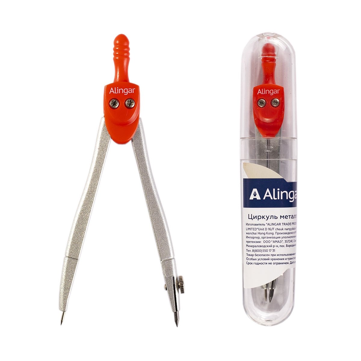 Циркуль металлический для выполнения чертежных работ. В прозначном пластиковом футляре.