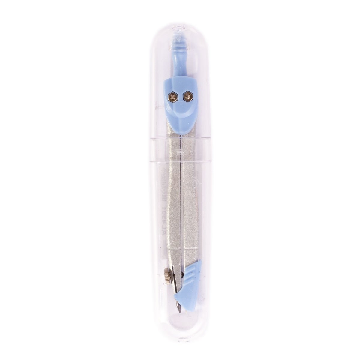 Циркуль металлический 82 мм в футляре из прозрачного пластика для выполнения чертежных работ.
