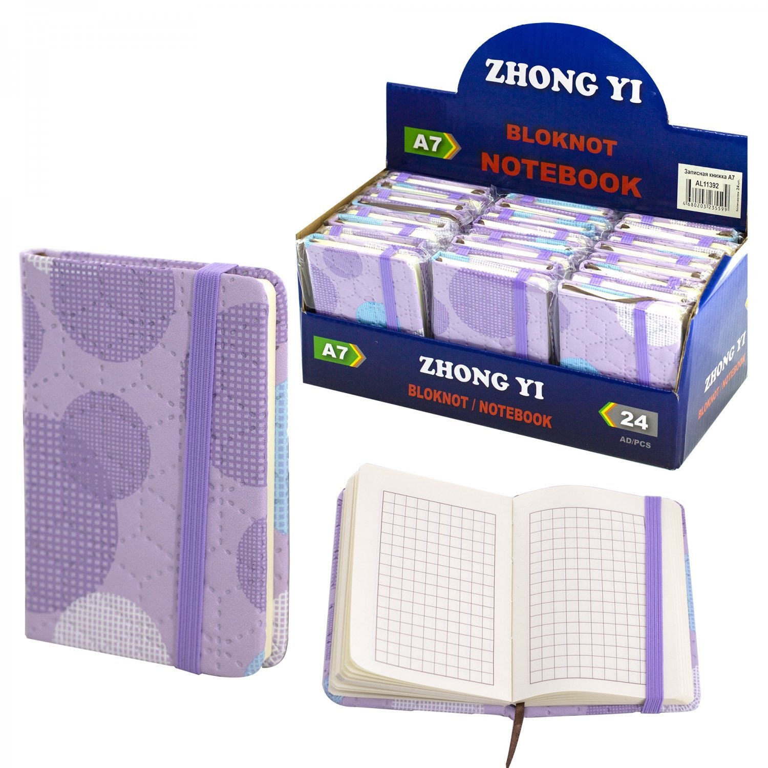 Записная книжка, А7, Alingar, 7БЦ, ПВХ (голография), на резинке, клетка, 96 л., "Разводы", сиреневый
